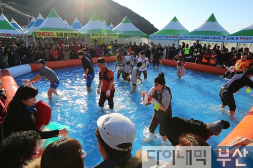 ▲가덕도대구축제 맨손대구잡기에 참여한 시민들.