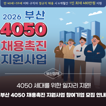 부산 4050 세대를 위한 일자리 지원! 2026 부산 4050 채용촉진 지원사업 참여기업 모집