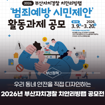 우리 동네 안전을 직접 디자인하는 2026 부산자치경찰 치안리빙랩 '범죄예방 시민제안' 활동과제 공모