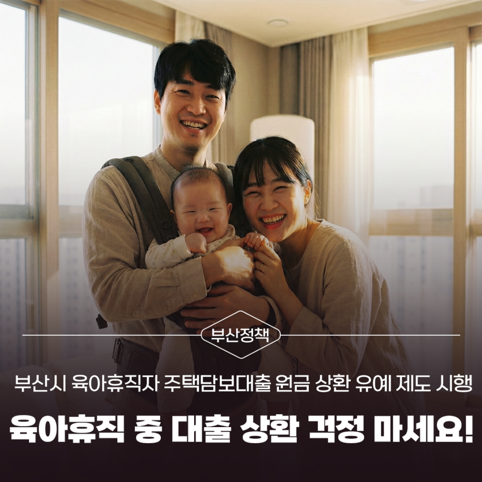 육아휴직 중 대출 상환 걱정 마세요! 부산시 육아휴직자 주택담보대출 원금 상환 유예 제도 시행!