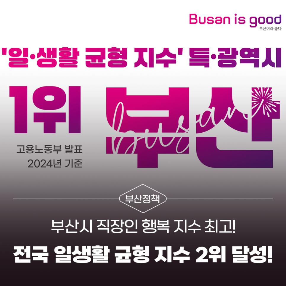 부산시 직장인 행복 지수 최고!2024 전국 일생활 균형 지수 2위 달성!