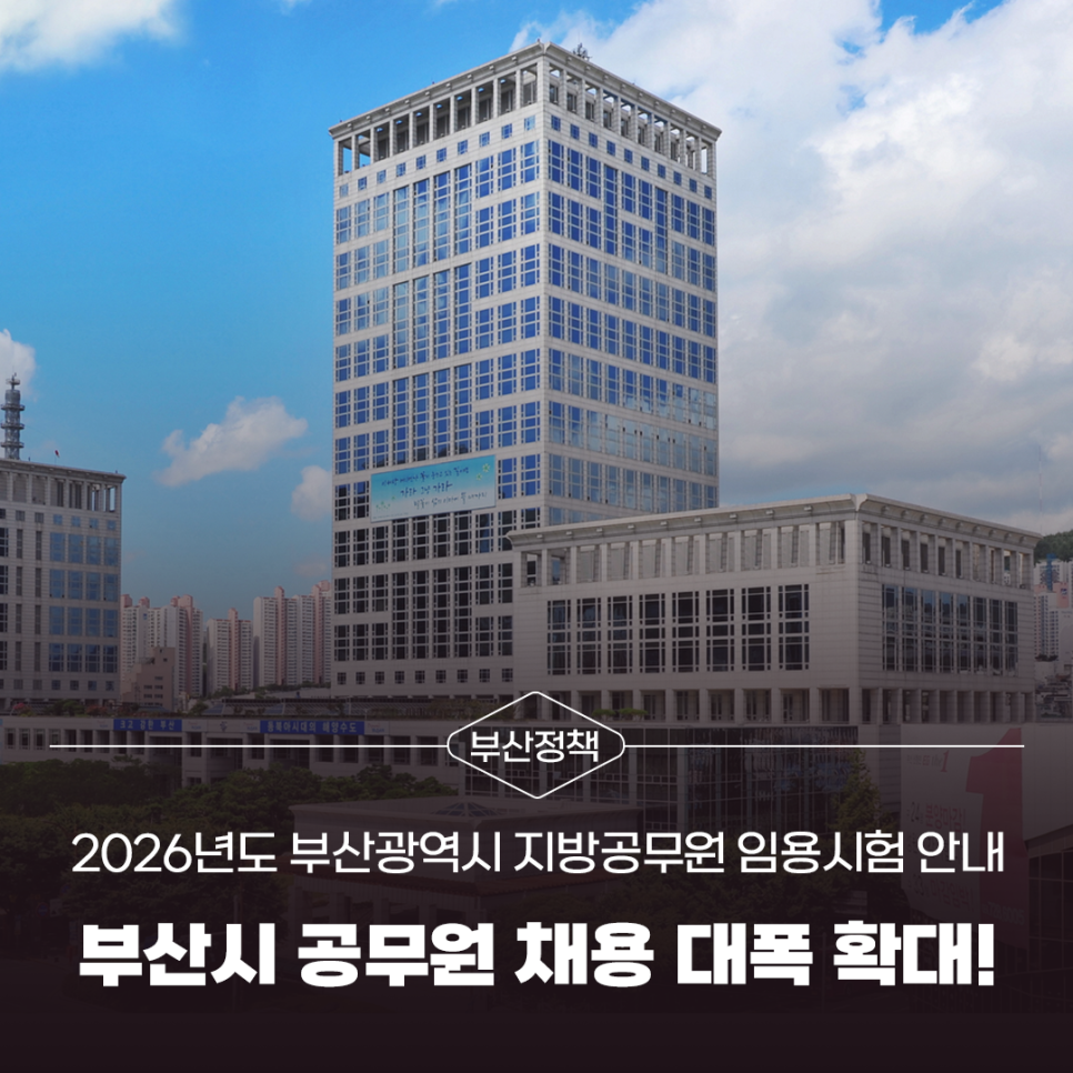 부산시 공무원 채용 대폭 확대! 2026년도 부산광역시 지방공무원 임용시험 안내