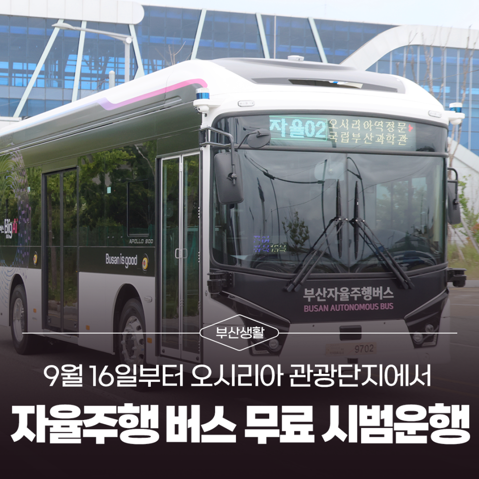 부산시, 9월 16일부터 오시리아 관광단지에서 자율주행 버스 무료 시범운행 시작