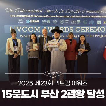 15분도시 부산, 「2025 리브컴 어워즈」 금상 및 기준상 2관왕 '지속가능 도시 모델로 국제적 인정'