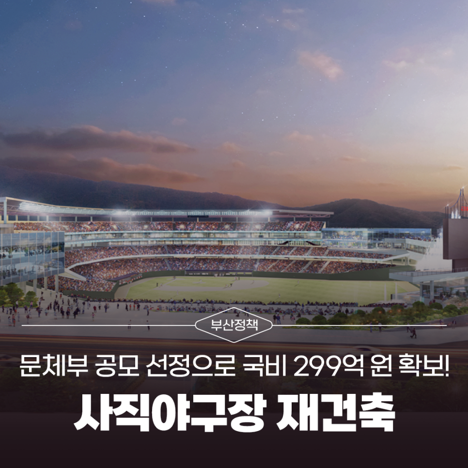 사직야구장 재건축, 문체부 공모 선정으로 국비 299억 원 확보!