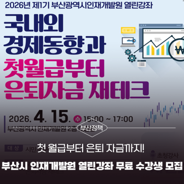 첫 월급부터 은퇴 자금까지! 부산시 인재개발원 열린강좌 무료 수강생 모집 안내