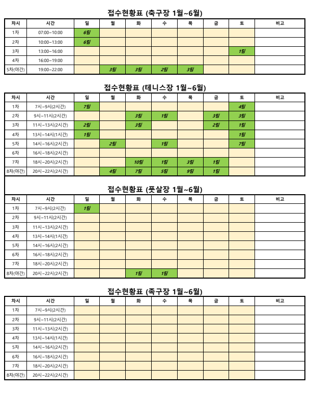 2026년 상반기 해운대수목원 운동시설 장기사용 대관신청 접수현황(11/19까지)