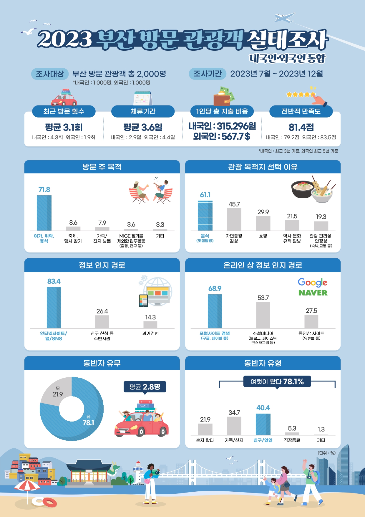 - 부산 방문 관광객 (내국인) 1,000명 (외국인) 1,000명