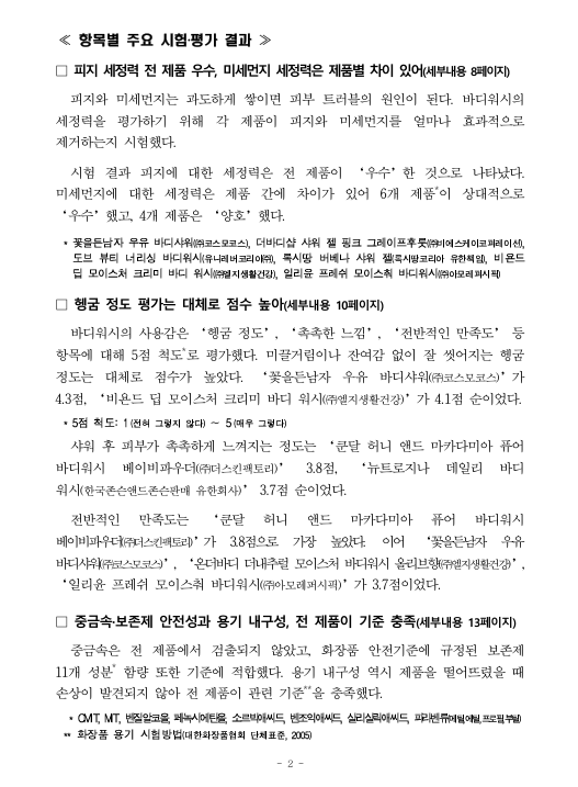 [바디워시 품질비교 결과]