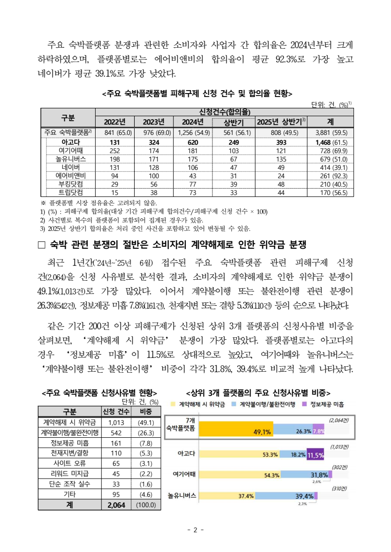 [피해예방주의보] 숙박플랫폼 소비자분쟁 급증, 62.1%가 주요 7개 플랫폼에서 발생
