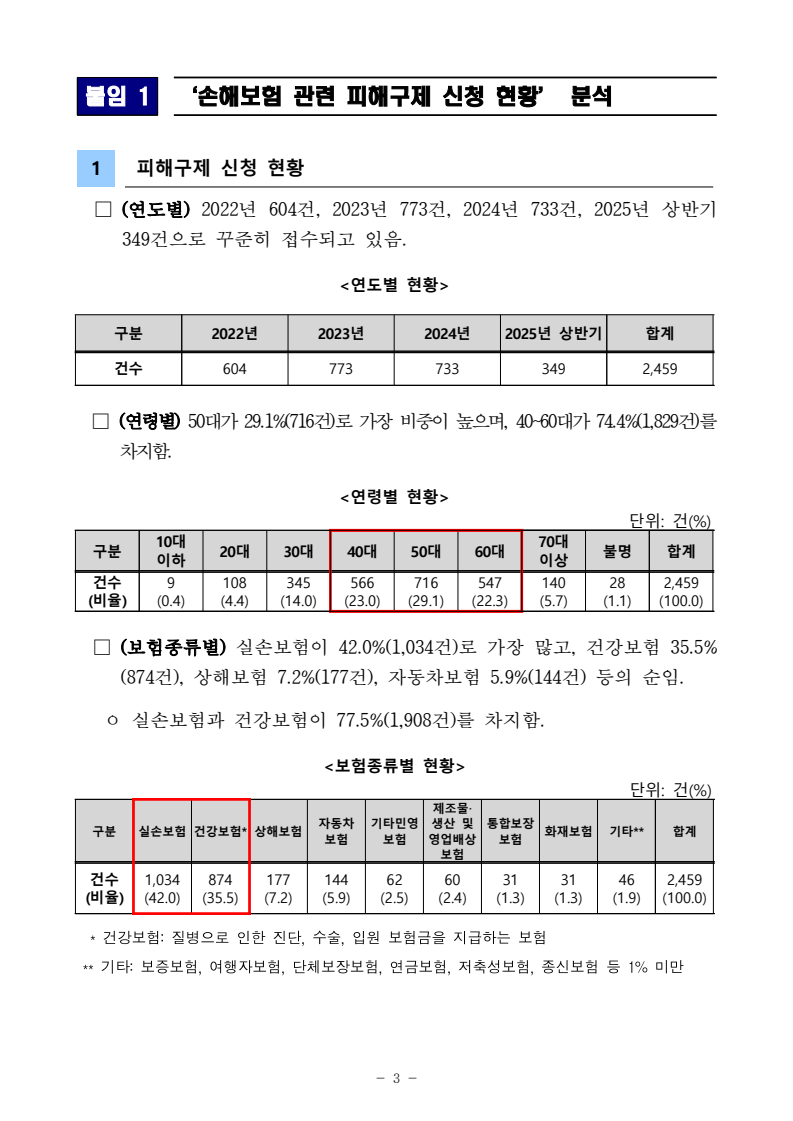 [피해예방주의보] 손해보험 소비자분쟁, 88.0%가 보험금 지급 관련 불만