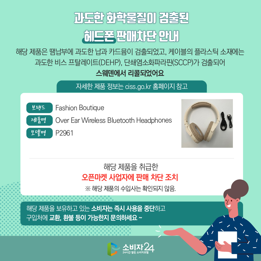 과도한 화학물질이 검출된 헤드폰 판매차단 안내