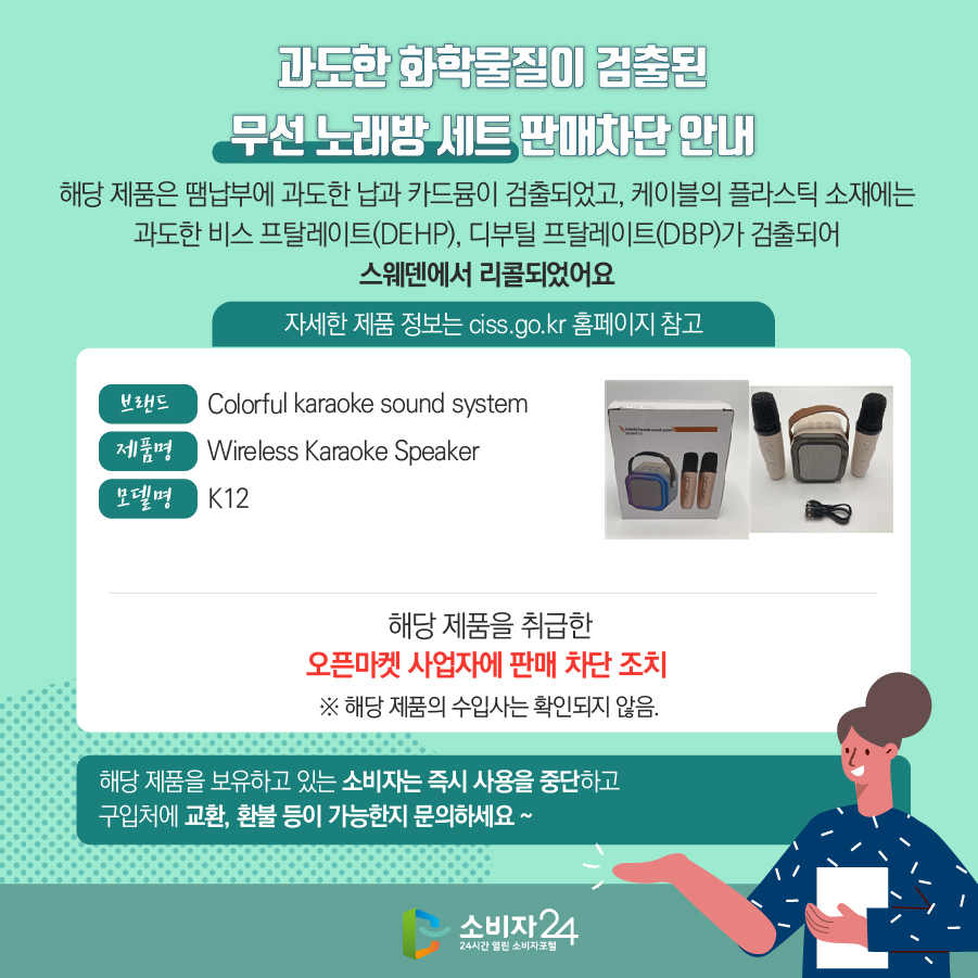 과도한 화학물질이 검출된 무선 노래방 세트 판매차단 안내