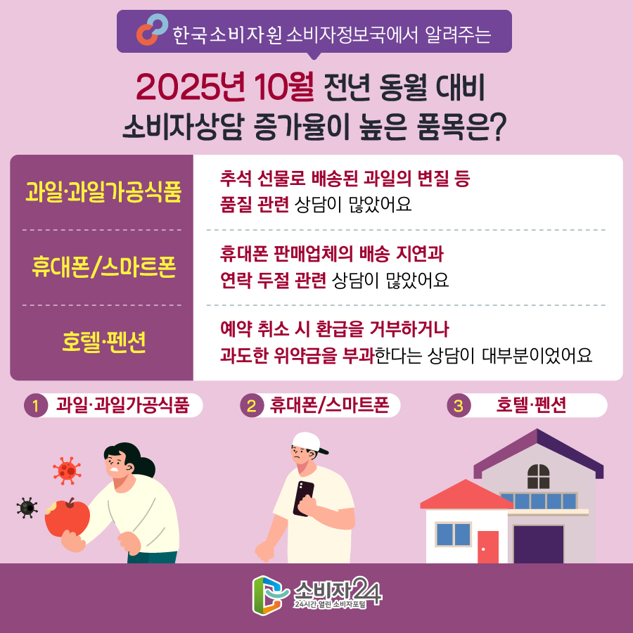 2025년 10월 전년 동월 대비·전월 대비 소비자 상담 증가율이 높은 품목은?
