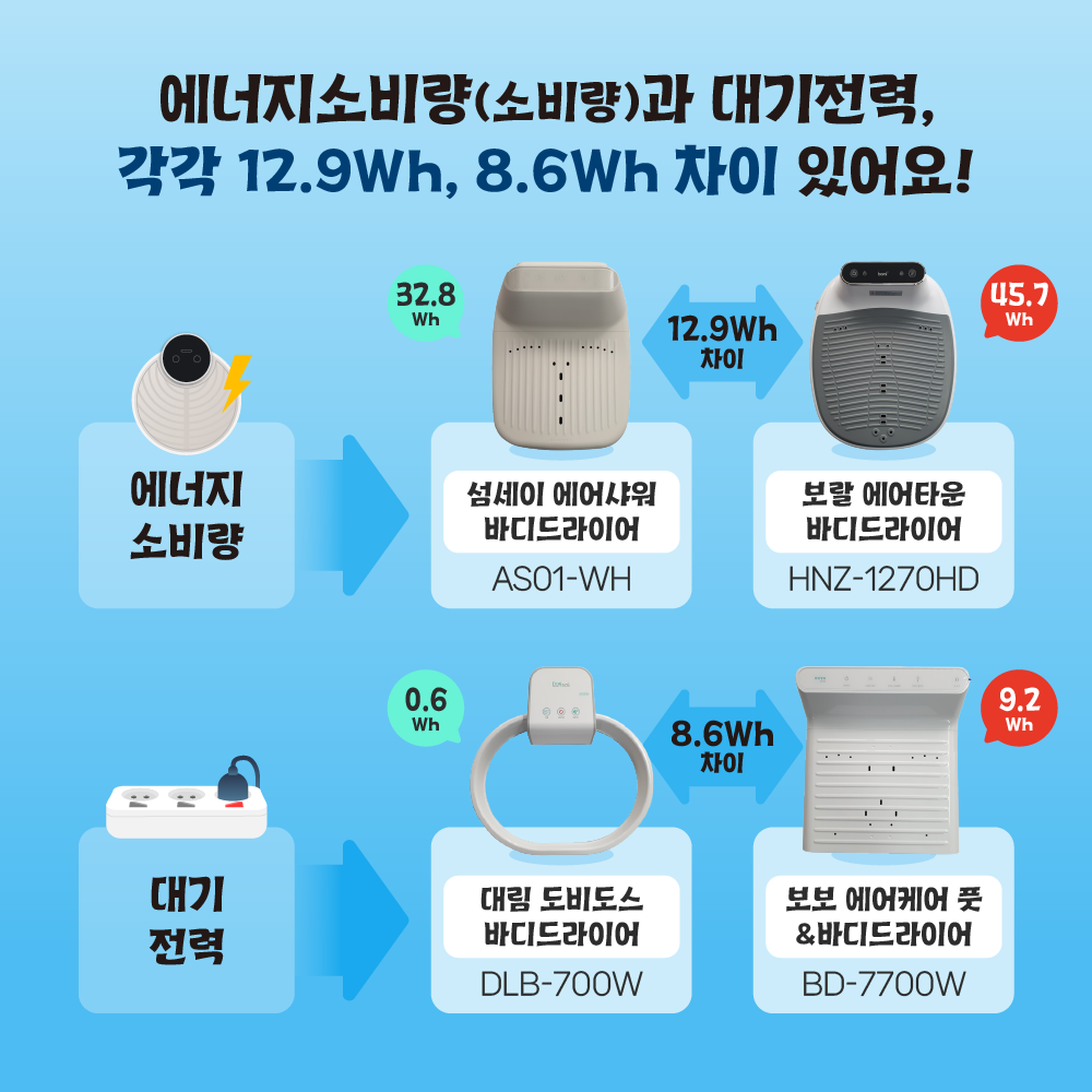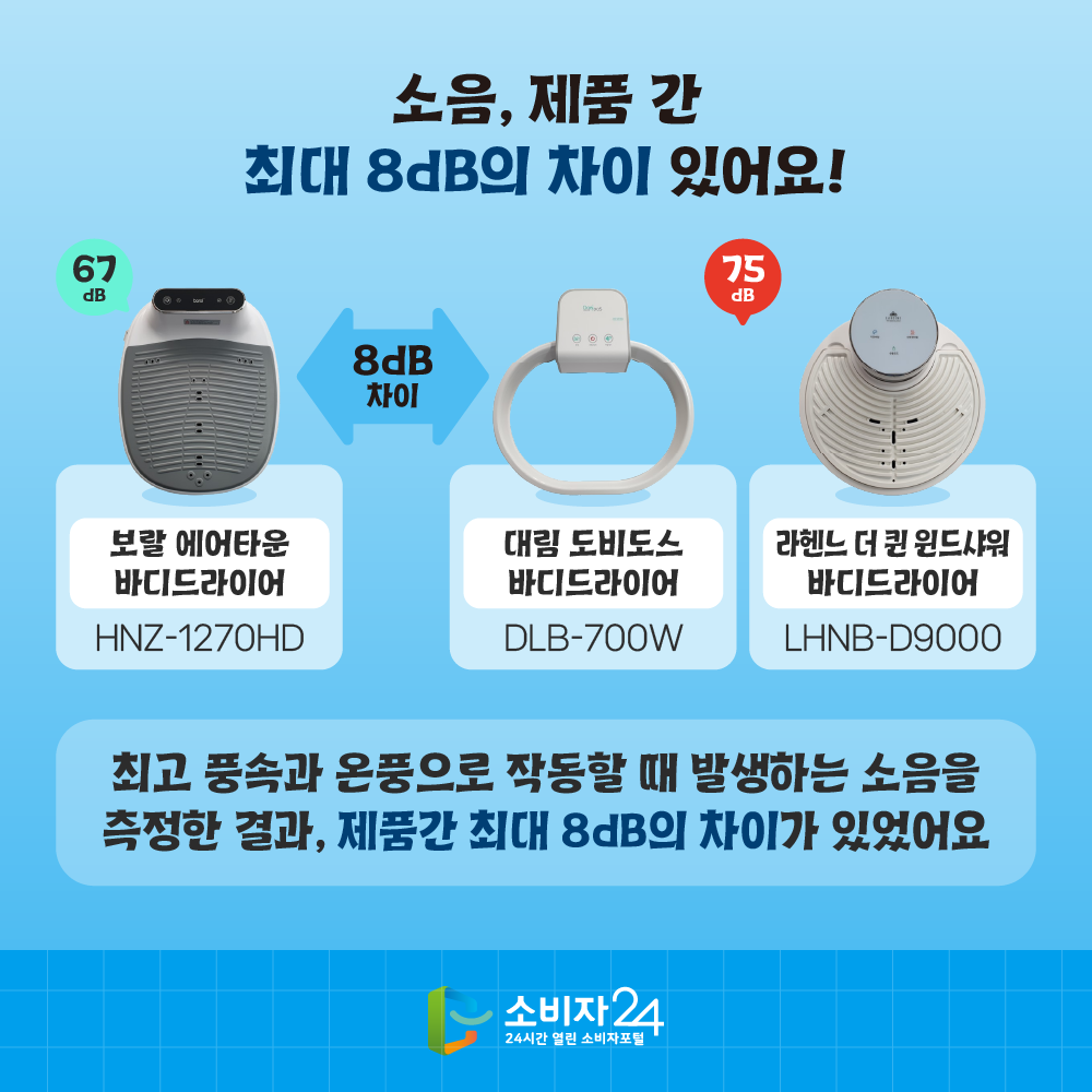 바디드라이어, 제품별로 소음 등에 차이 있어