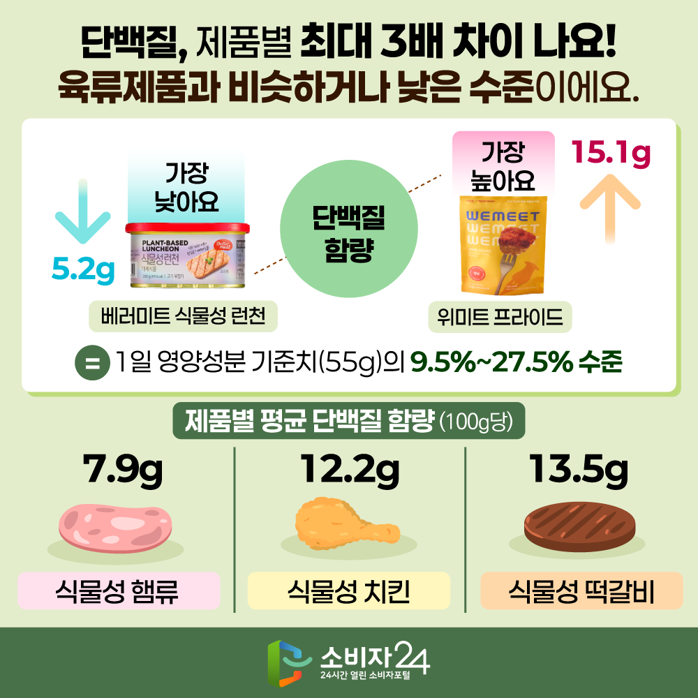 식물성 대체육, 제품별 단백질 함량 최대 3배 차이