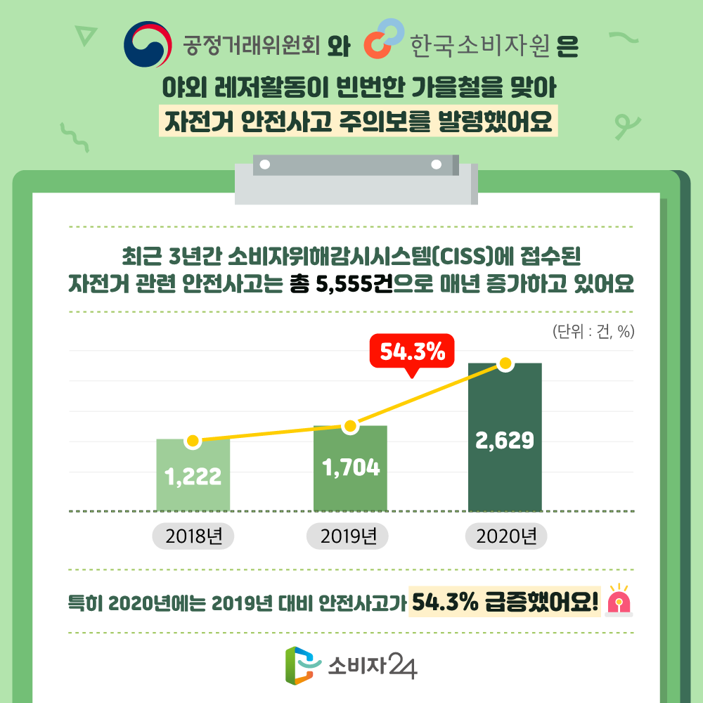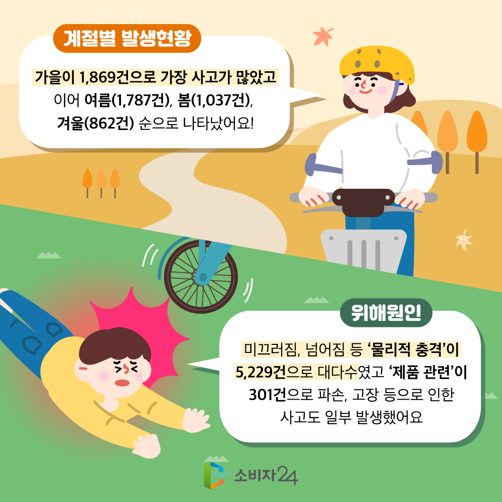 야외활동 많은 가을철 자전거 안전사고 주의하세요!