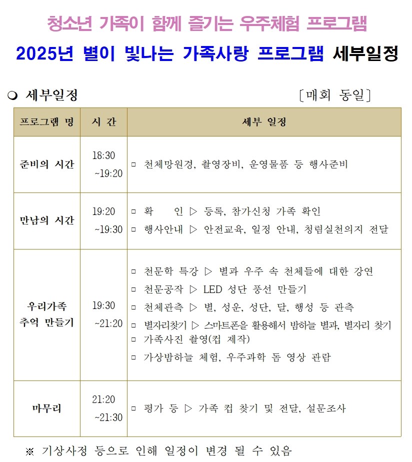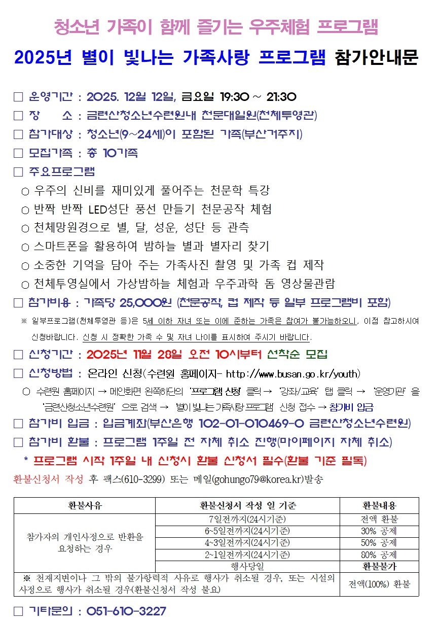 별이 빛나는 가족사랑 프로그램 참가 가족 모집안내