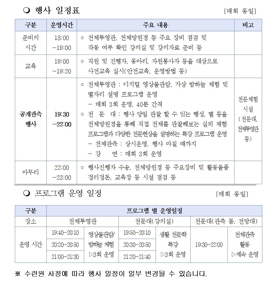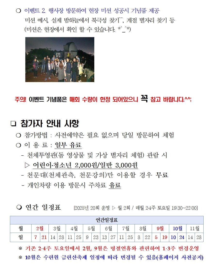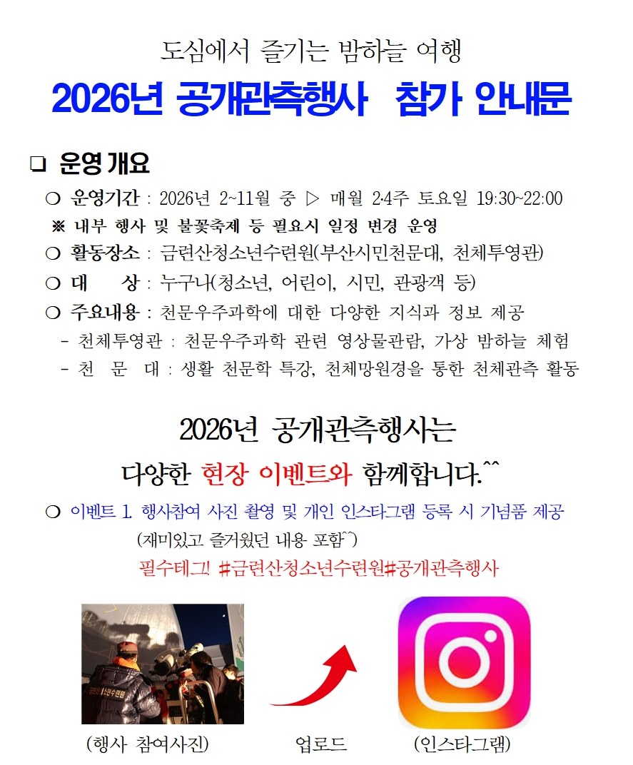 2026년 공개관측행사 안내^^