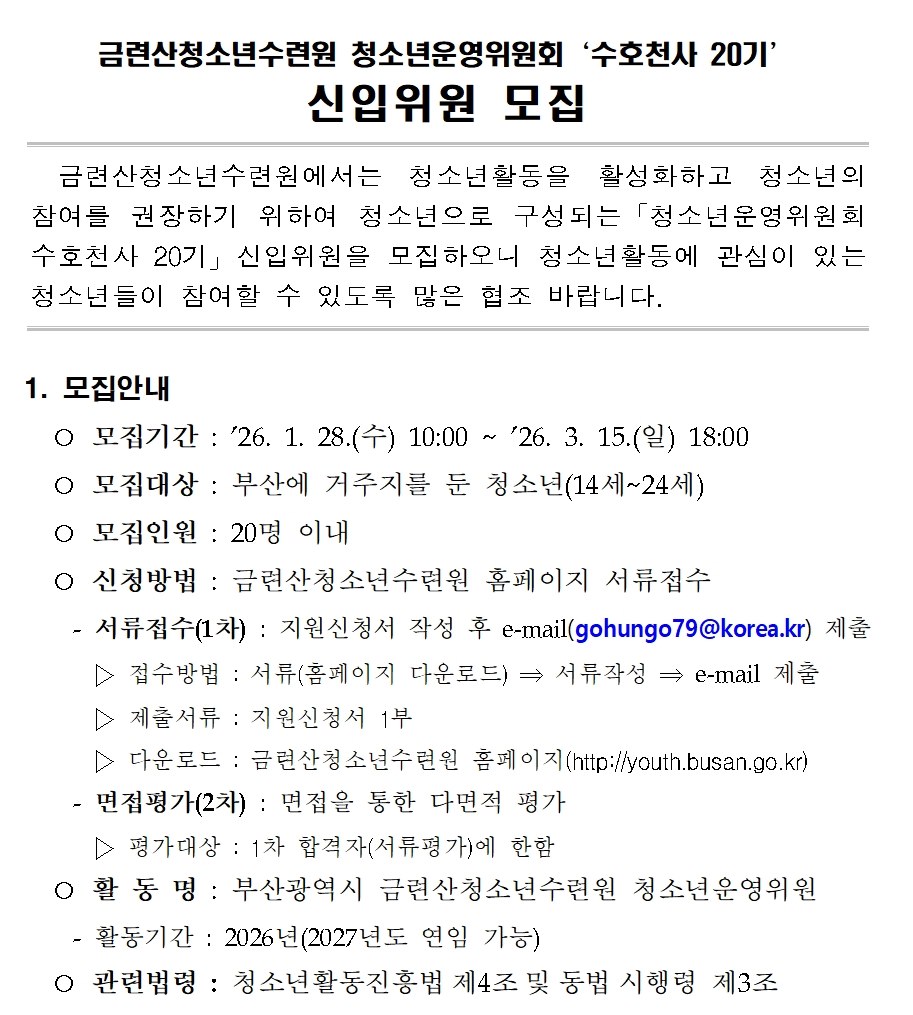 2026년 청소년운영위원회 신입위원 모집안내