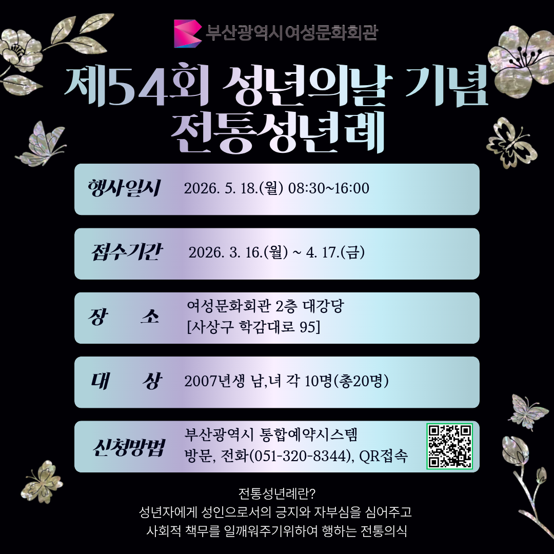 ❍ 행사내용 : 성년자 예절교육 및 전통 성년례 재현 등