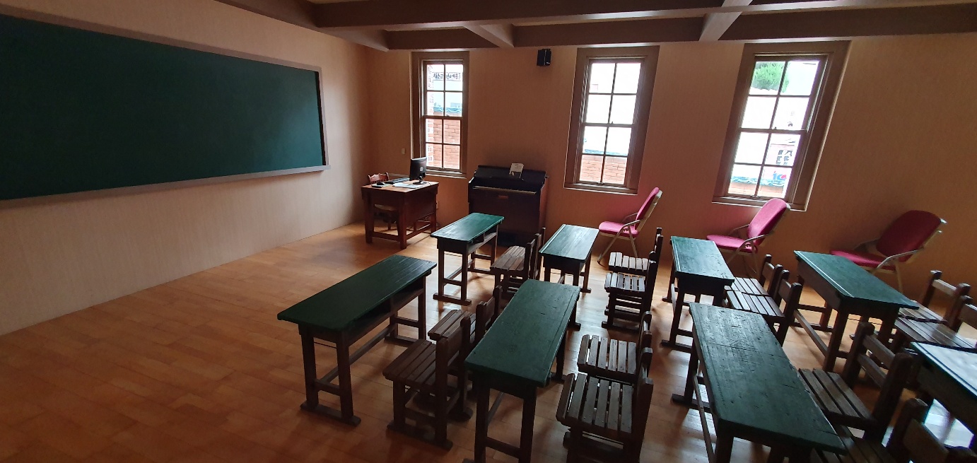 (전시관의 내부. 일신여학교의 연혁과 학교의 모습을 체험할 수 있는 공간 등이 있다.)