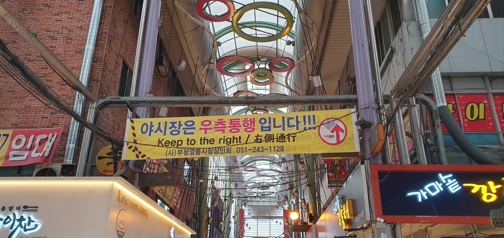 임시수도기념관과 동아대학교 캠퍼스가 있는 쪽에서 대청로를 따라 쭉 걷다 보면 국제시장과 깡통시장이 맞붙은 긴 블록을 지난다. 커다란 규모의 두 시장이 길 하나를 사이에 두고 나란히 서 있는 모습이 참 이채롭다. 국제시장은 동명의 영화로 널리 알려졌지만 부산 사람들에게는 그 옆의 깡통시장도 국제시장 못지않게 익숙하고 정겨운 곳이다.