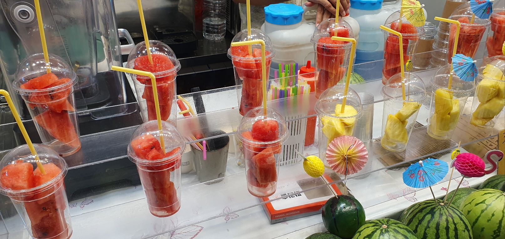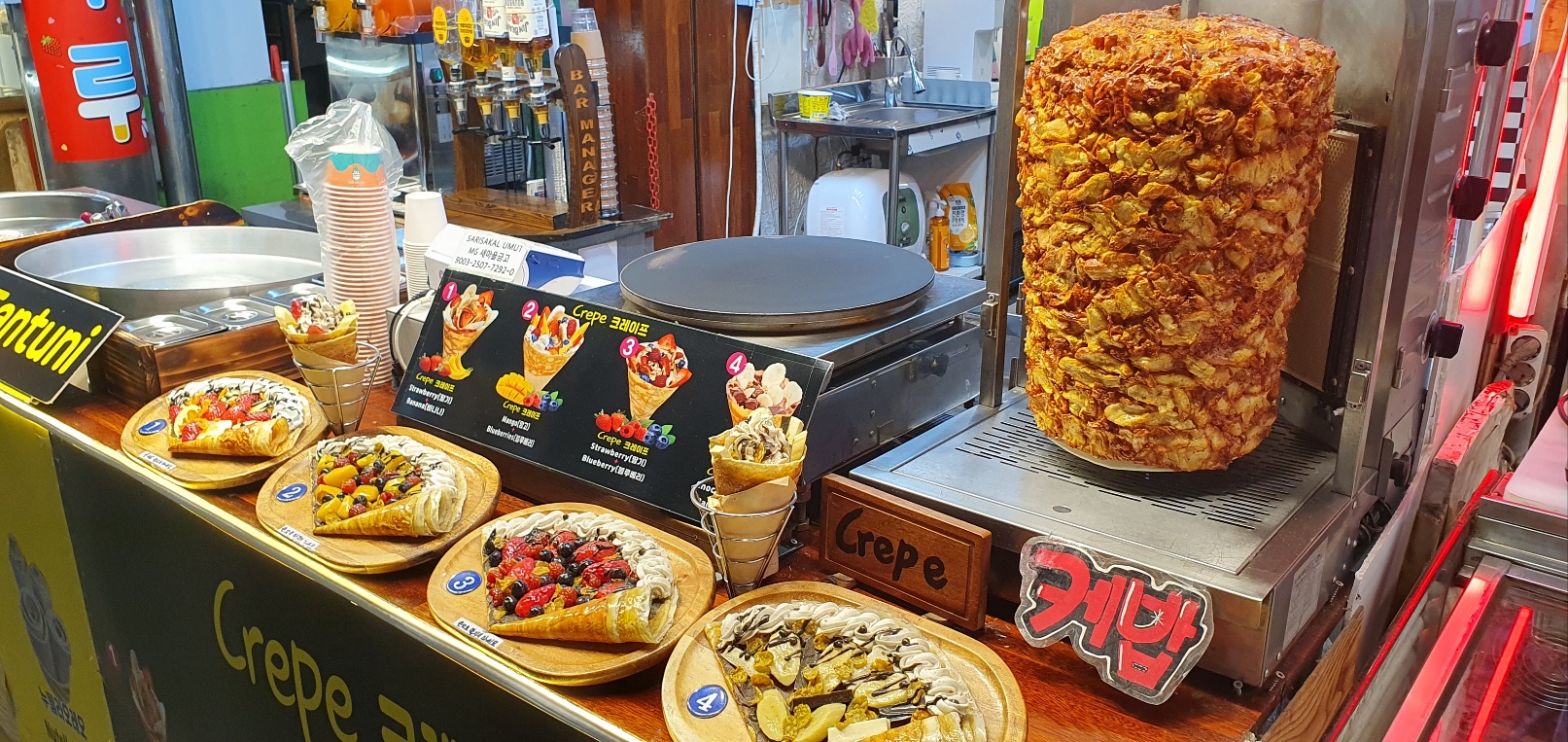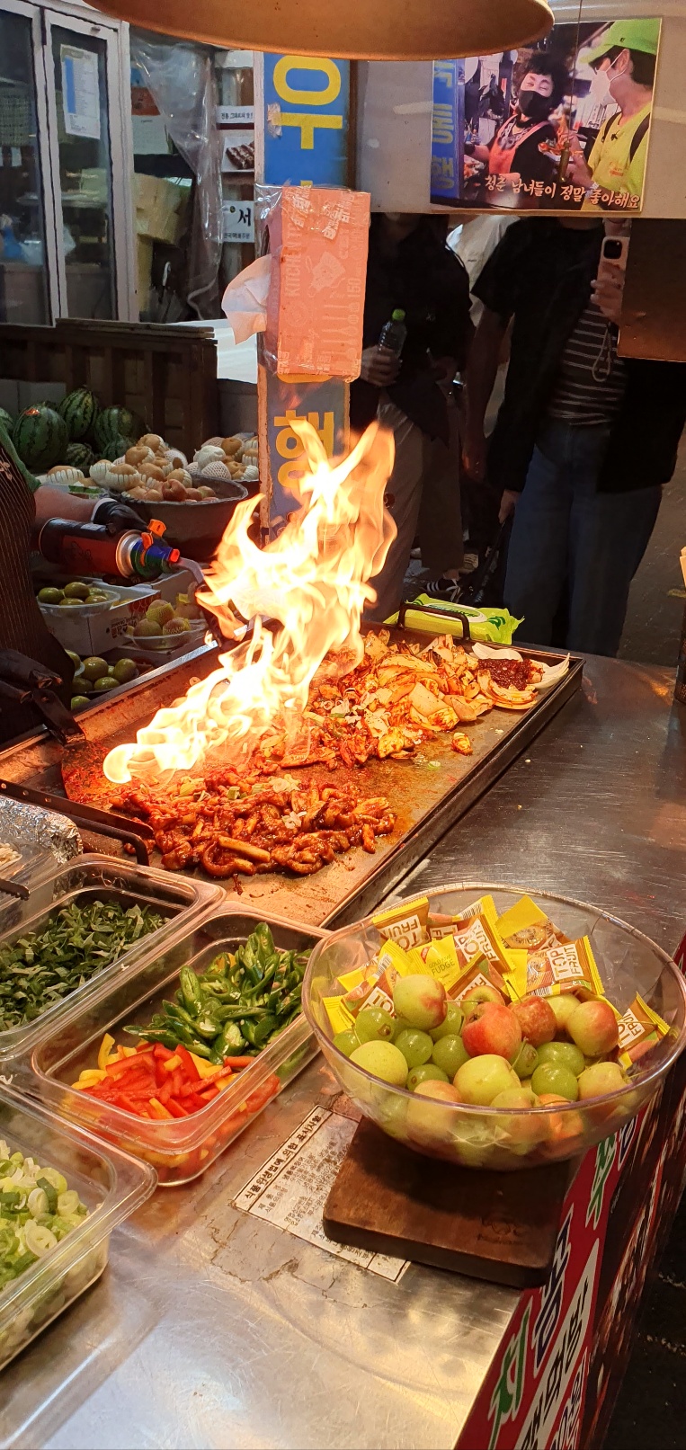 (야시장 인근 가게에도 다종다양한 음식들을 판다.)
