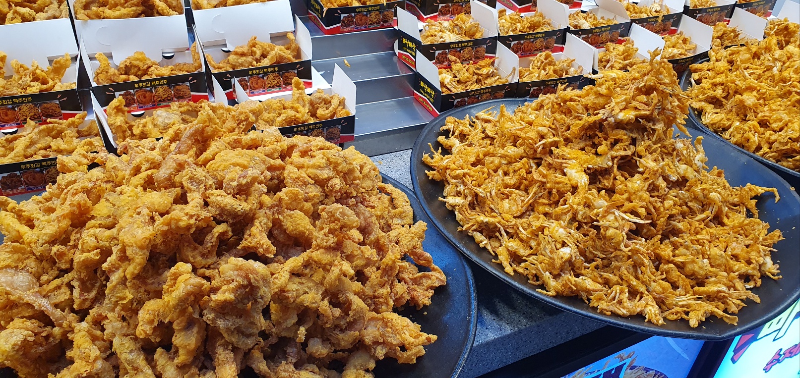 이곳에서 철저히 지켜지는 규칙이 있다. 바로 야시장 상인들 간에 같은 메뉴를 중복하여 파는 것은 금지한다는 규칙이다. 잘 나가는 메뉴가 있으면 곧바로 근처에 그걸 흉내 내는 유사 매장이 우후죽순 늘어나는 모습을 떠올리면 이러한 규칙은 분쟁을 근본적으로 차단할 수 있는 꽤 합리적인 방안으로 보인다. 중복된 메뉴를 금지하는 규칙 덕분에 깡통시장 야시장은 전국의 여러 야시장 중에서도 다양한 길거리음식들이 팔리는 곳이 되었다. 실제로도 야시장이 열리는 노점에서 판매하는 음식이 무척 다양하여 놀라울 정도였다. ‘여기서 이런 음식도 판다고?’라는 즐거운 놀라움이다.