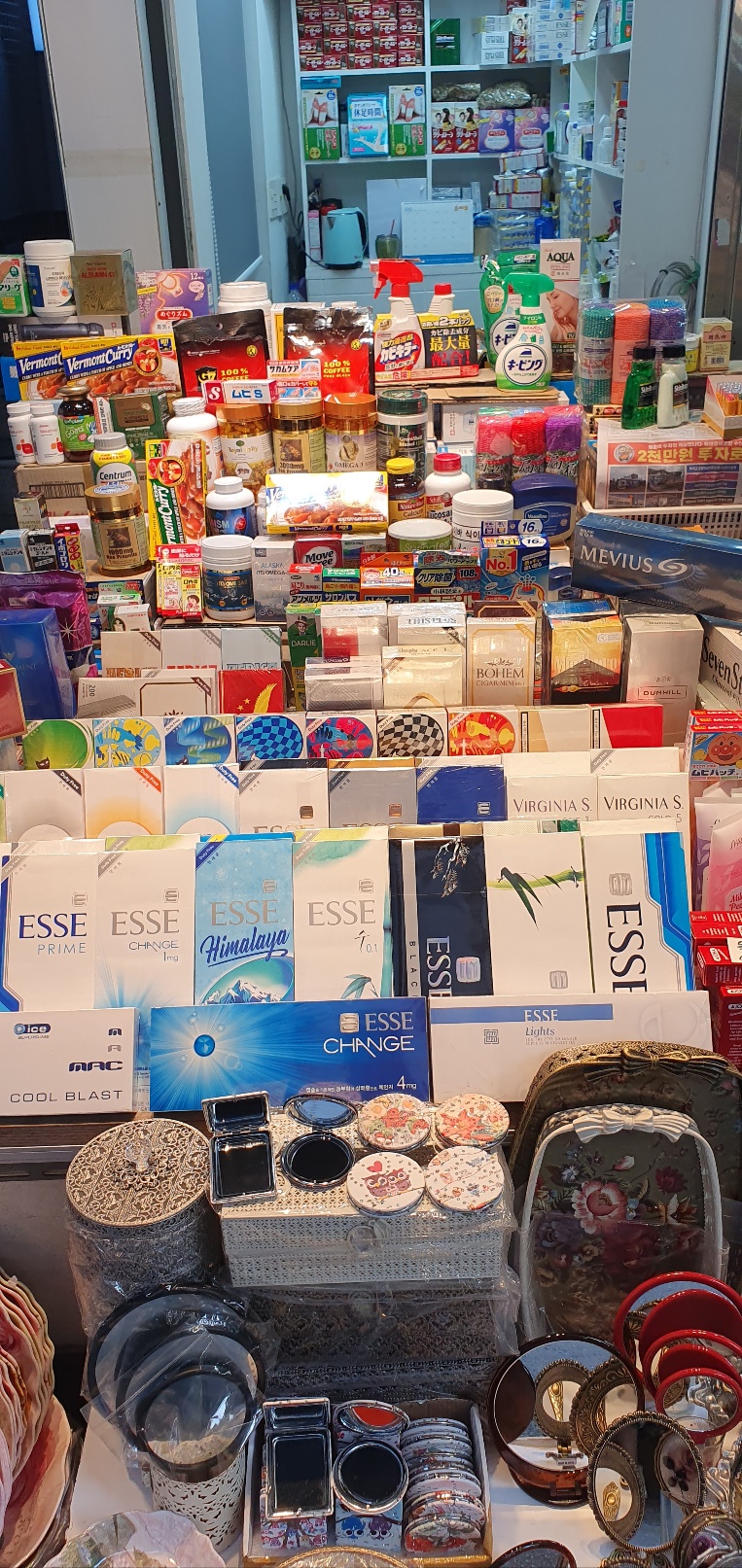 (시장 여기저기서 찾아볼 수 있는 수입 잡화들.)