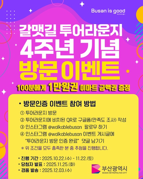**갈맷길 투어라운지 4주년 기념 방문이벤트 알림**