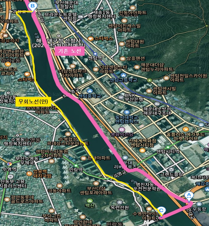 (당초) 중간인증대→APEC나루공원→수영교→종점인증대