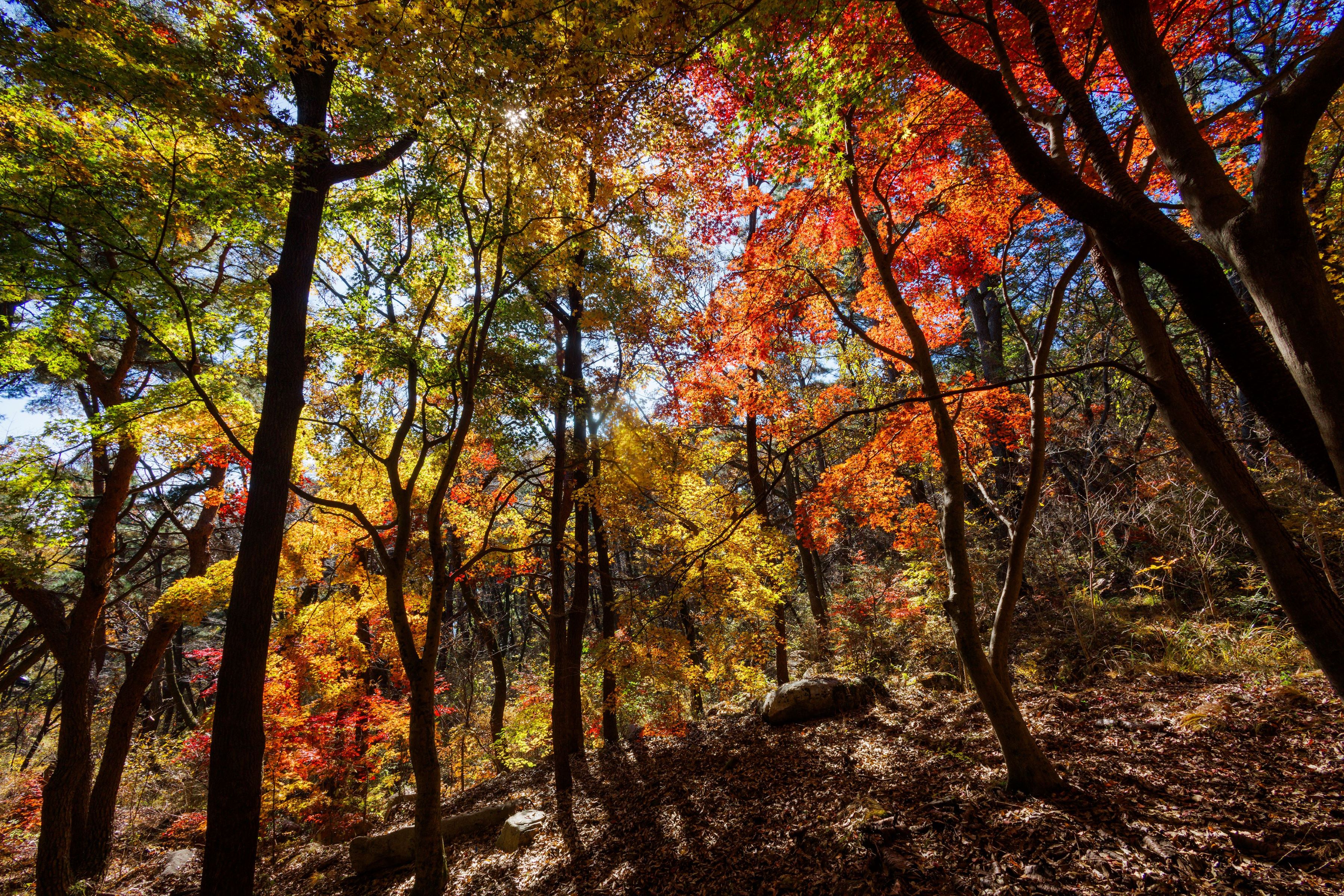 숲으로 빛이 스며들어 단풍잎에 닿을 땐 입에서 탄성이 절로 나온다.
