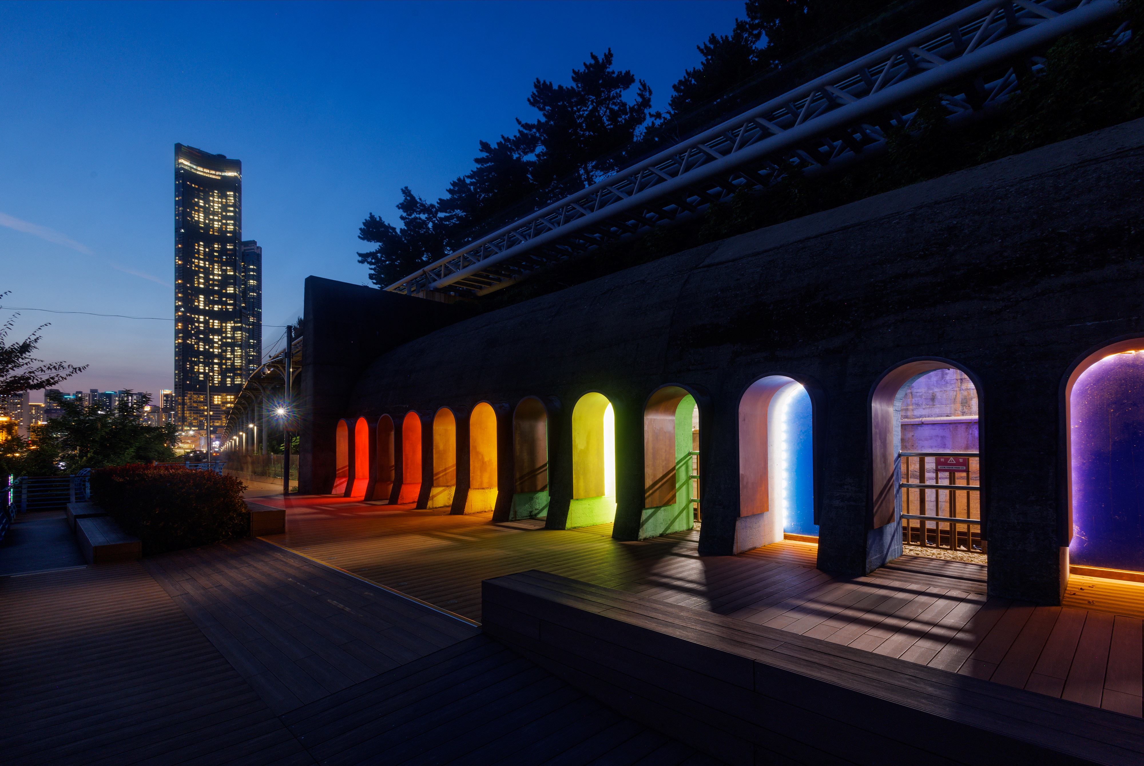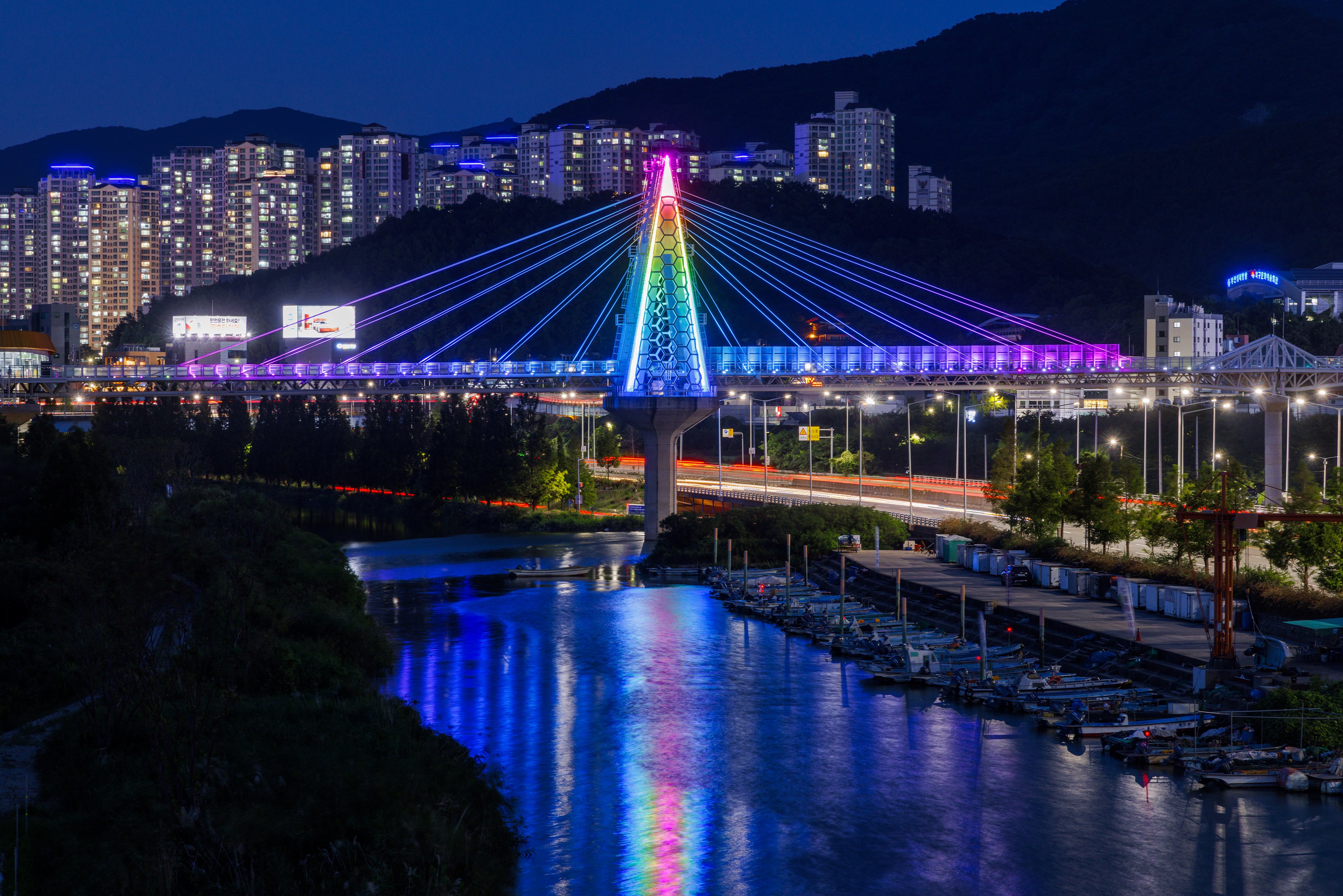 형형색색 아름다운 빛으로 밤을 밝히는 금빛노을브릿지의 야간 조명도 볼거리다.