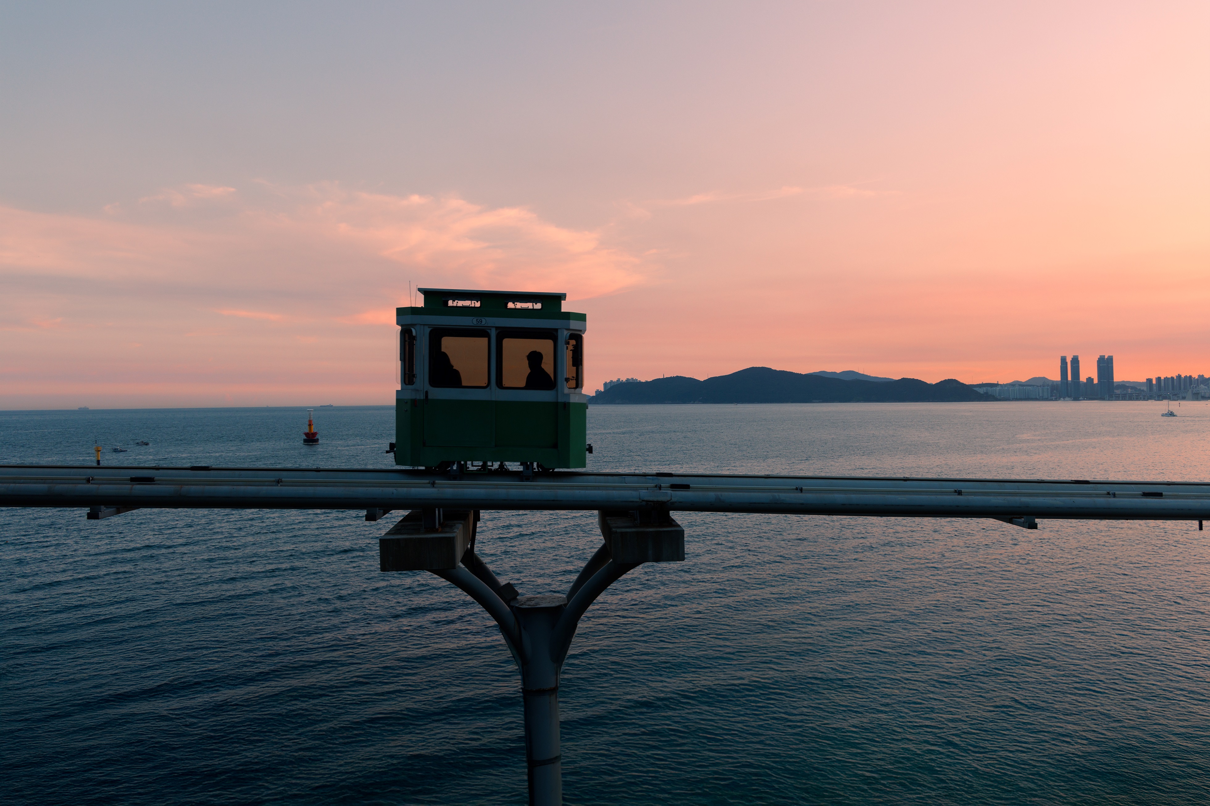 오렌지빛 하늘을 향해 느릿느릿 움직이는 스카이캡슐과 해변열차는 여행 감성을 자극하는 최고의 피사체다.