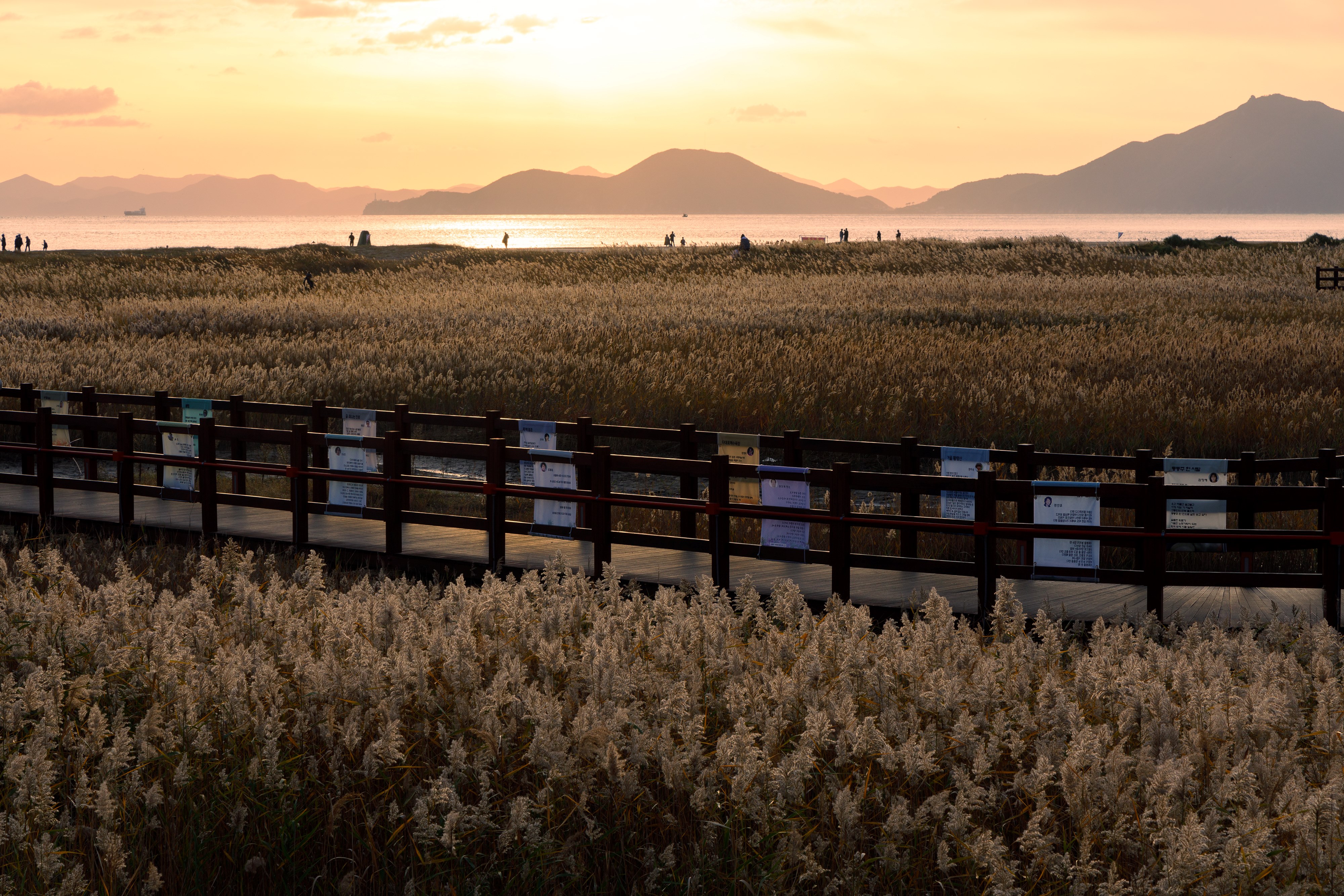 갯펄 위를 지나가는 산책로 끝엔 갈대가 무성하다.