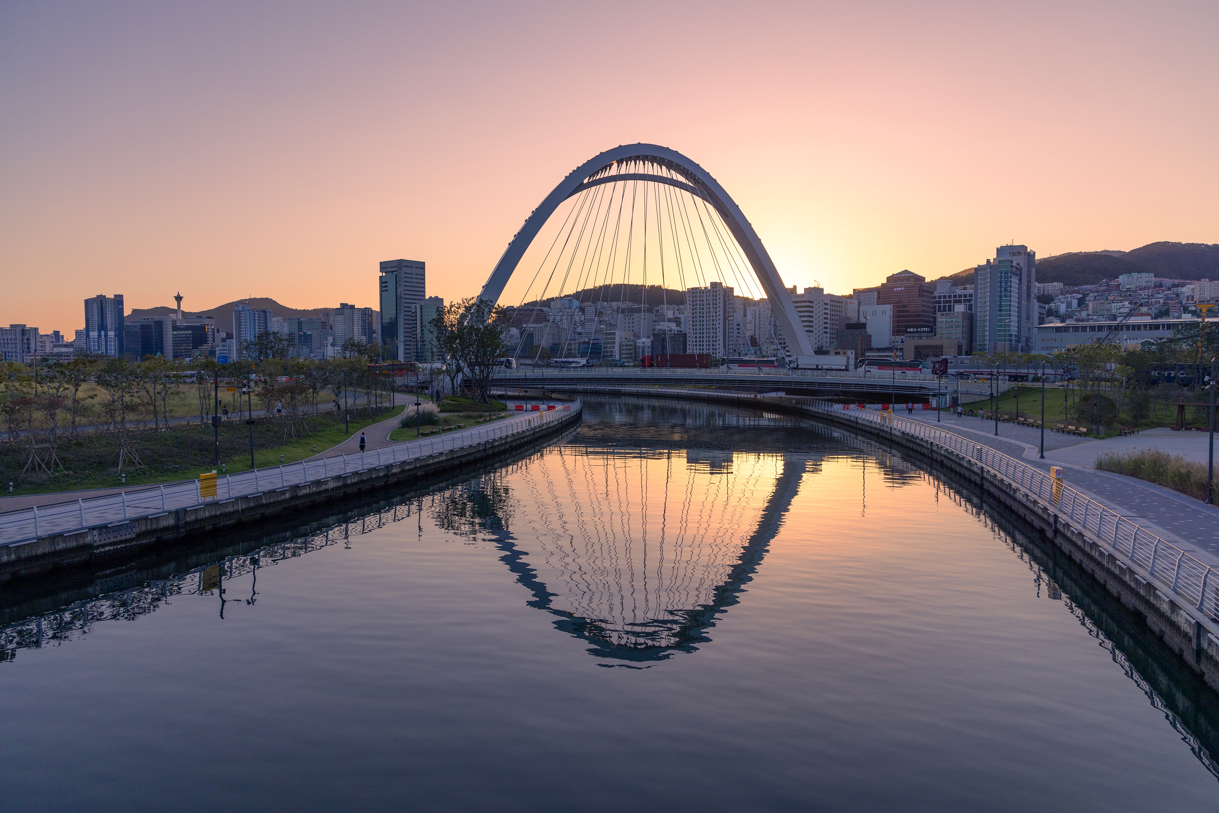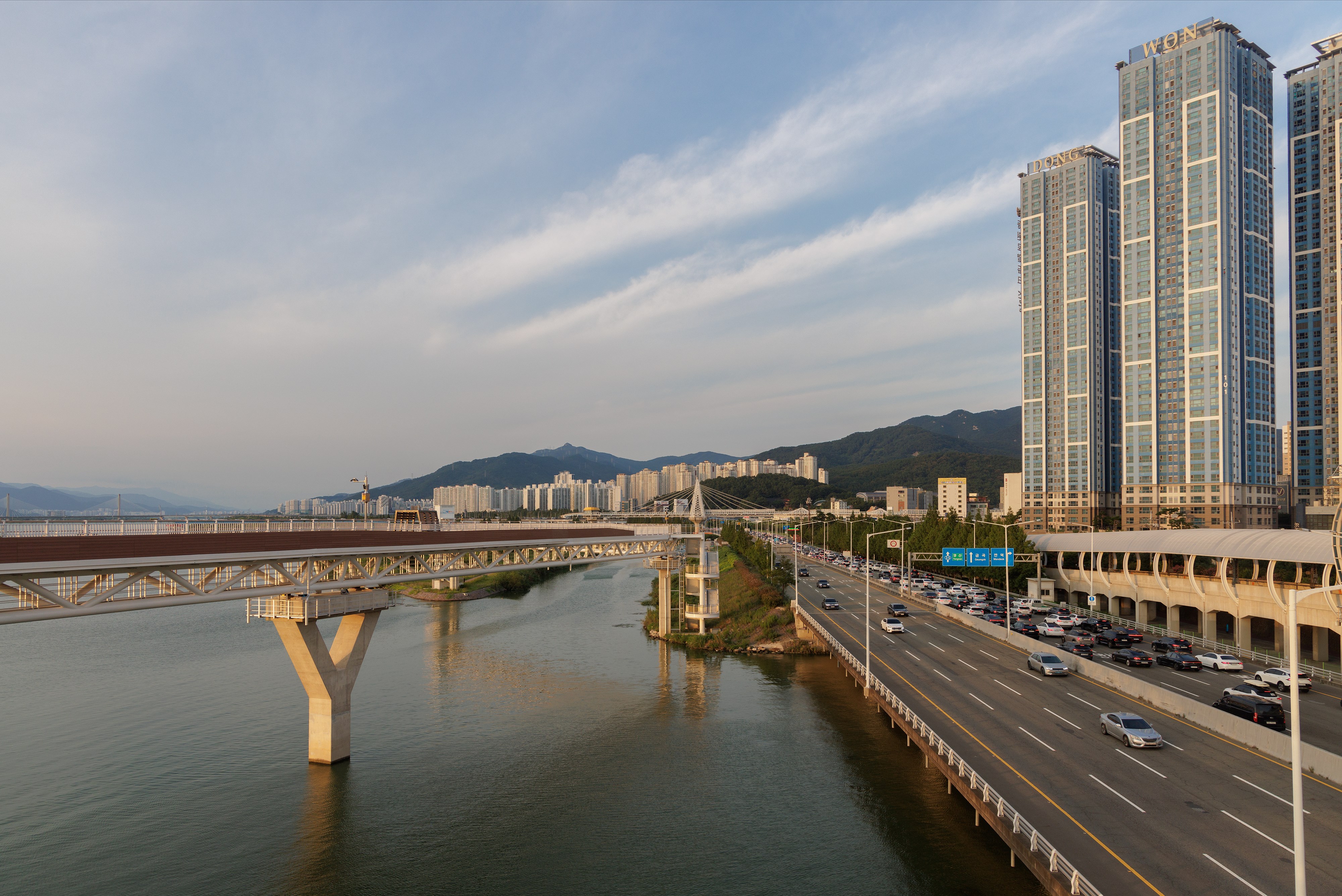 공원을 가로질러 금빛노을브릿지로 올라가면 다른 각도에서 낙동강과 도심을 바라볼 수 있다.
