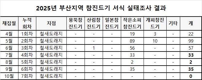 2025년 부산지역 참진드기 서식 실태조사 결과(7회차)