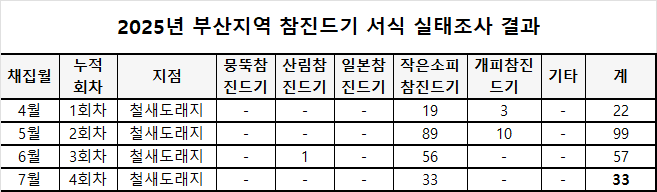 2025년 부산지역 참진드기 서식 실태조사 결과(4회차)