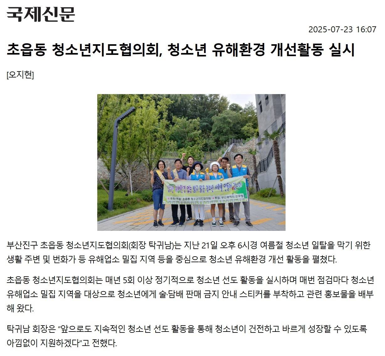 [초읍동] 청소년지도협의회, 청소년 유해환경 개선활동 실시