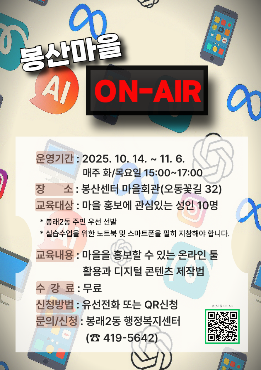 ❍ 교 육 명 : 디지털 마을 홍보 역량 교육 「봉산마을 ON-AIR」