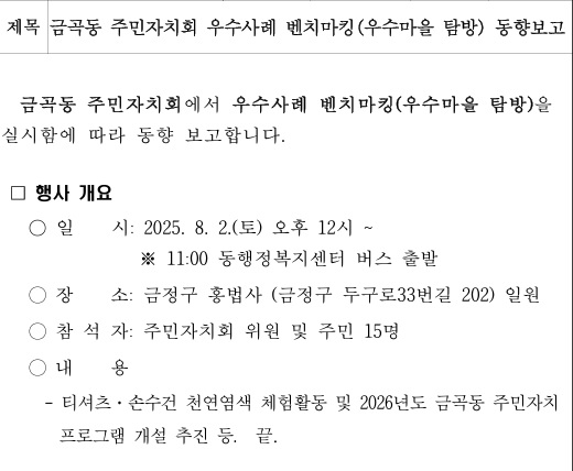 [금곡동]주민자치회 우수사례 벤치마킹(우수마을 탐방) 동향보고