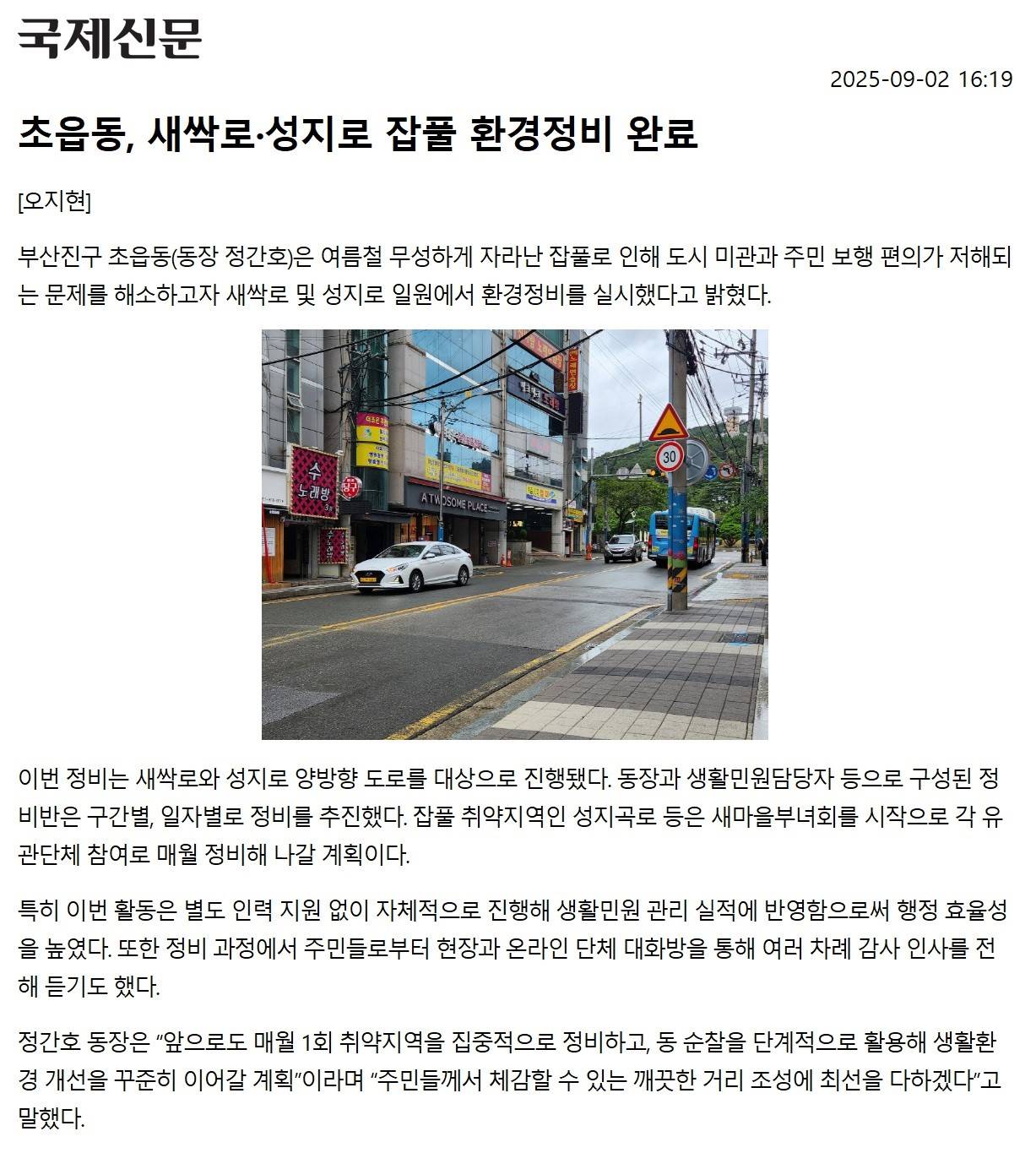 [초읍동] 새싹로·성지로 잡풀 환경정비 완료
