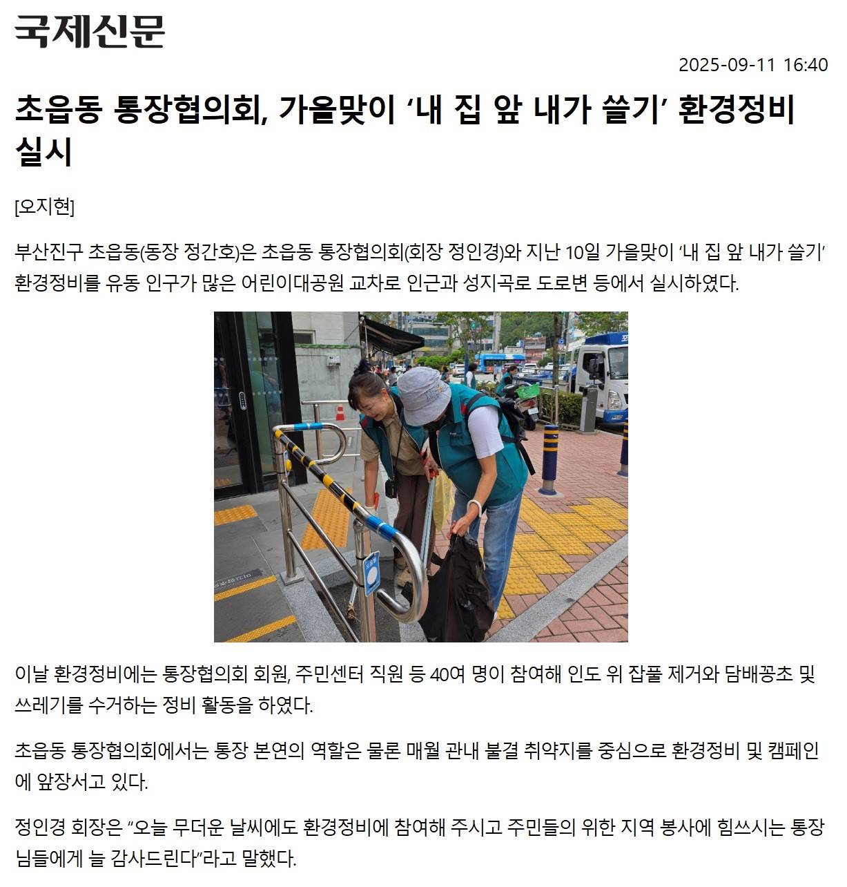 [초읍동] 통장협의회, 가을맞이 내 집 앞 내가 쓸기 환경정비 실시