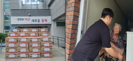 4. 지원내용: 관내 저소득층 83세대에 성품 전달