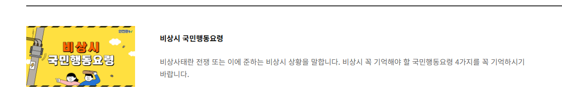 비상시 국민행동요령 동영상 게시