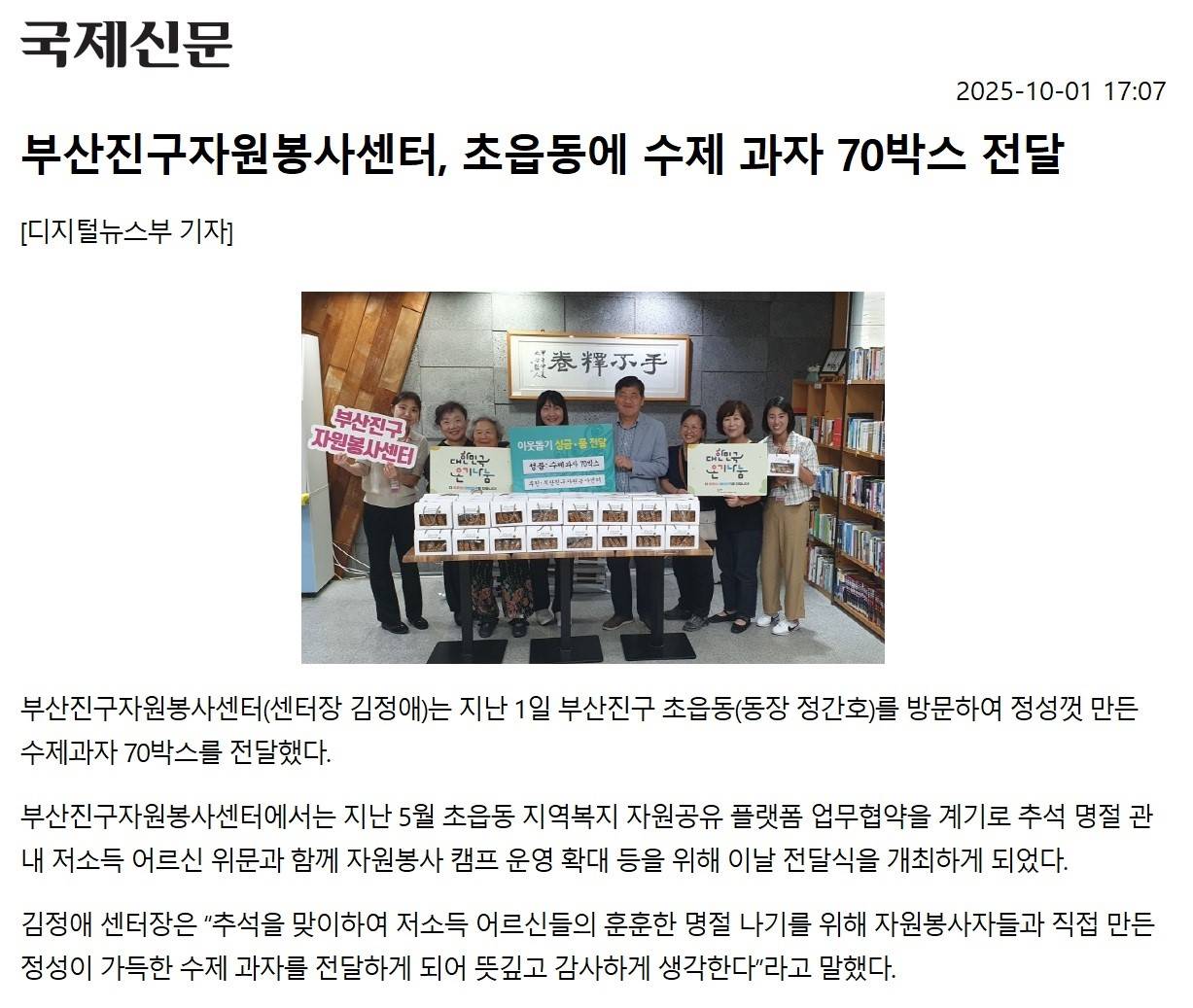 [초읍동] 부산진구자원봉사센터, 초읍동에 수제 과자 70박스 전달