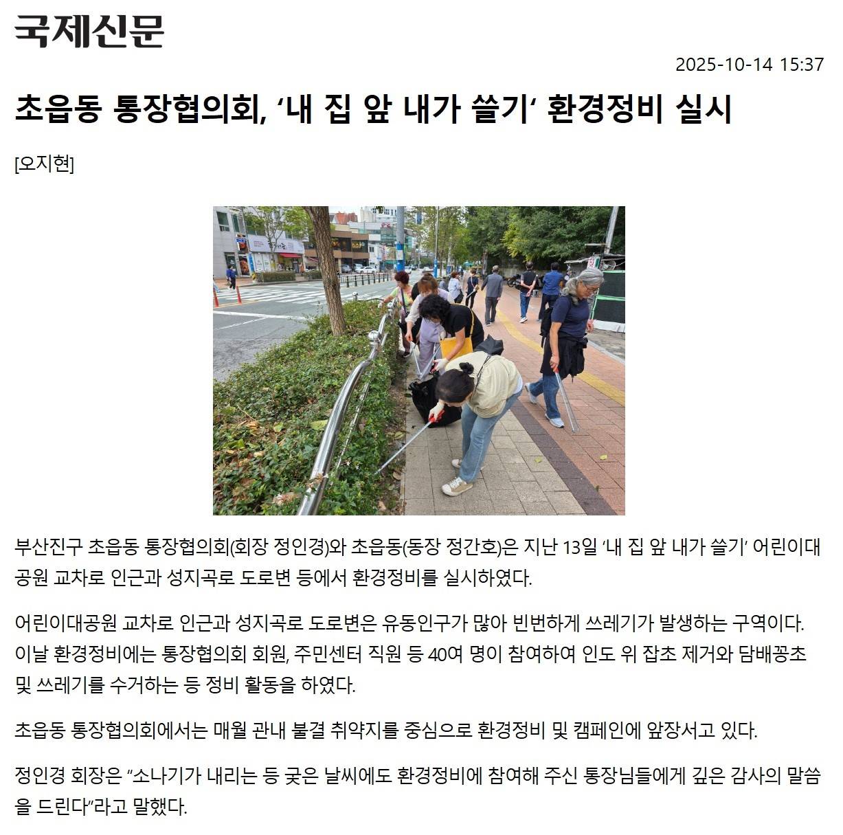 [초읍동] 통장협의회, 내 집 앞 내가 쓸기 환경정비 실시