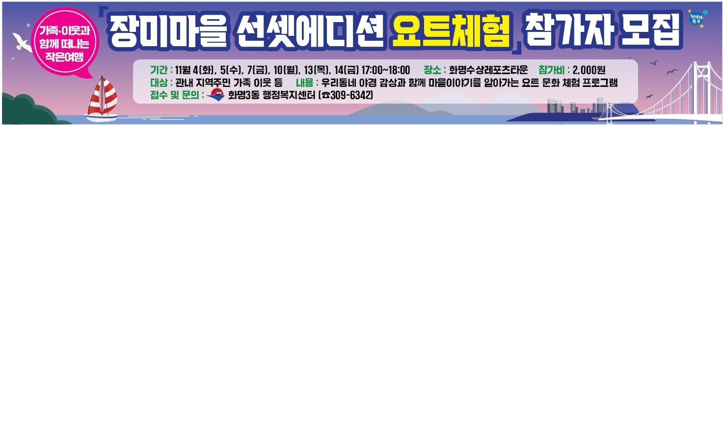 [화명3동] 장미마을 선셋 에디션 요트체험 참가자 모집