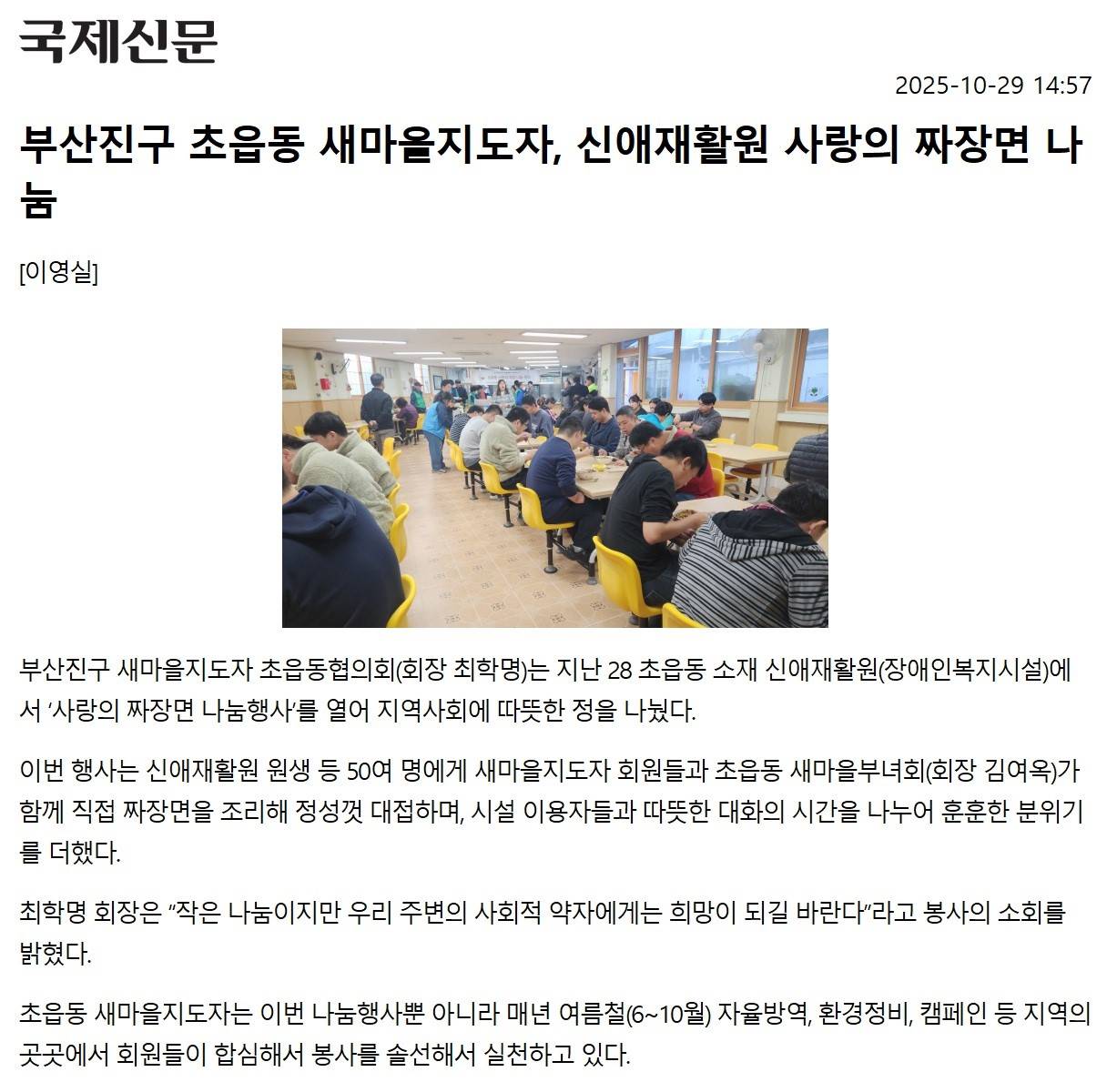 [초읍동] 새마을지도자, 신애재활원 사랑의 짜장면 나눔
